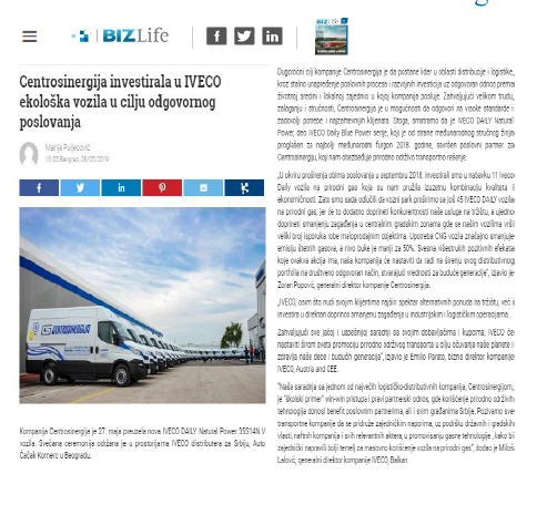 Centrosinergija investirala u Iveco ekološka vozila - Biz Life