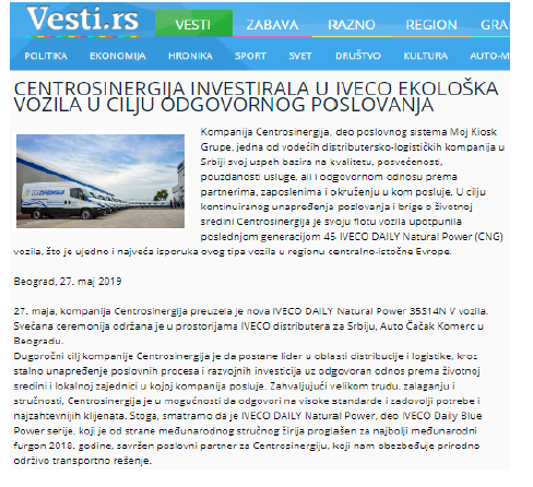 Centrosinergija investirala u Iveco ekološka vozila - Vesti